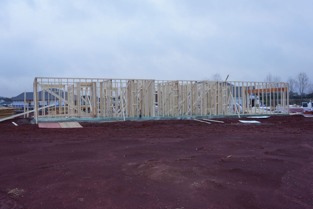 This week, the walls were built. The whole frame framework for the walls were built on site and assembled by the constructor workers. They made a huge progress in just one day.