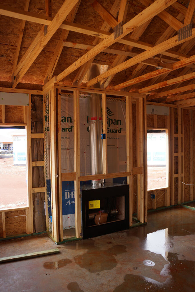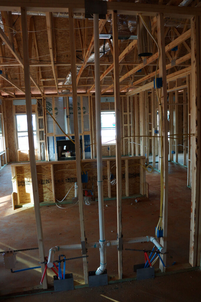 While we were on our trip to Texas, the constructor worker put the shingles on the roof as well as the hood for the chimney. Moreover, the pipes for the GAS stove and water heater have been installed. Now the inside is ready for inspection before they start closing the walls and ceiling.