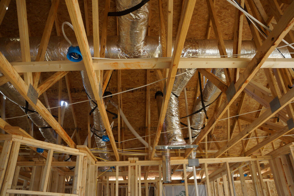 This week, the constructor worker made progress inside of the house. They installed the pluming and venting to the outside as well as they finished the electrical wiring including TV and LAN cables. Furthermore the AC unit inside is in place and all the air hoses are connected to the vents.
